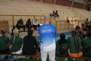 No ginásio esportivo, o intercâmbio se aprofundou. Com a mediação de Renata Siqueira, presidente do Instituto Gol Girls, a conversa fluiu. A professora Eliza Prodel, do Departamento de Educação Física e Desporto (DEFD), detalhou a estrutura e a filosofia do curso de Educação Física no Brasil, gerando um diálogo sobre as diferenças e semelhanças entre os sistemas universitários e esportivos dos dois países. Um a um, os atletas do VOLeaders se apresentaram, compartilhando suas trajetórias. “Foi uma experiência única conhecer a UFRRJ”, resumiu o nadador Aidan Crisci, estudante de Engenharia Aeroespacial, ecoando o sentimento do grupo.