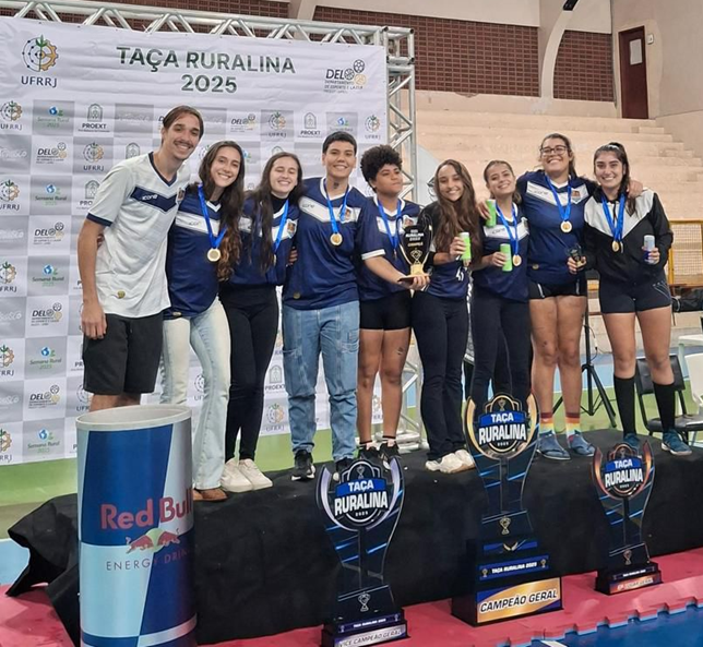 Time da atlética invocada recebendo a premiação da modalidade do handebol na taça ruralina